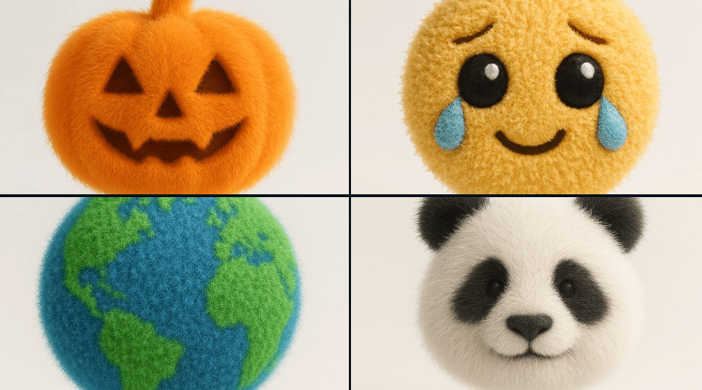 Con il prompt che trovi qui sotto puoi trasformare una semplice emoji in un oggetto 3D ricoperto di pelo, curato nei minimi dettagli.