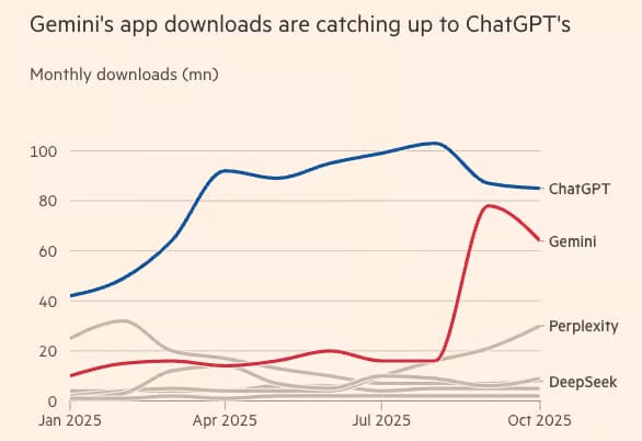 Per mesi ChatGPT ha dominato incontrastato. A ottobre ha registrato 85 milioni di download ed è stato il chatbot più popolare al mondo.
